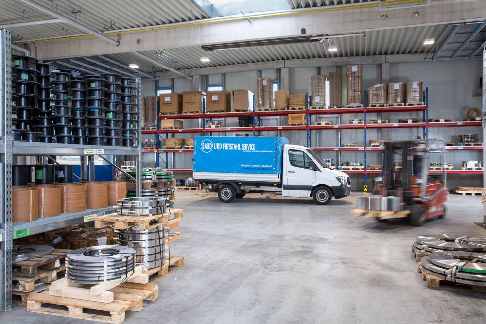 Wir haben mehr auf Lager: Dank gezielter Lagerhaltung von rostbeständigen Federbandstählen, gehärteten und ungehärteten Kohlenstoffstählen, rostbeständigen Präzisbändern und unlegierten Kaltbändern, bedienen wir ein breites Spektrum an Werkstoffen für die Stanz- und Biegetechnik. So können wir Materialien aus unserem eigenen Lager in kürzester Zeit bearbeiten und flexibel – in kleinen wie großen Mengen – liefern.